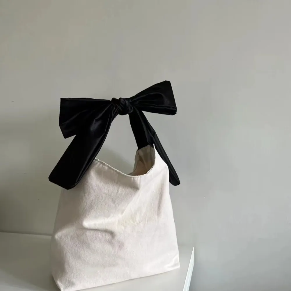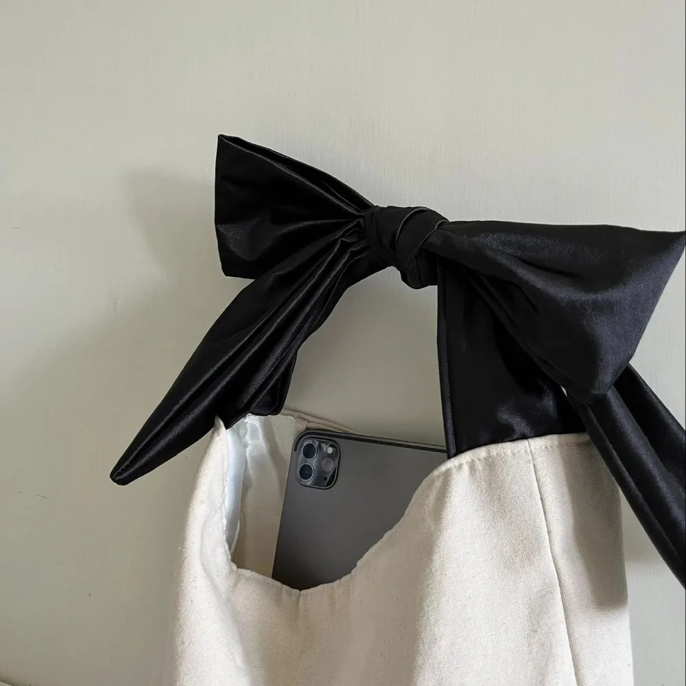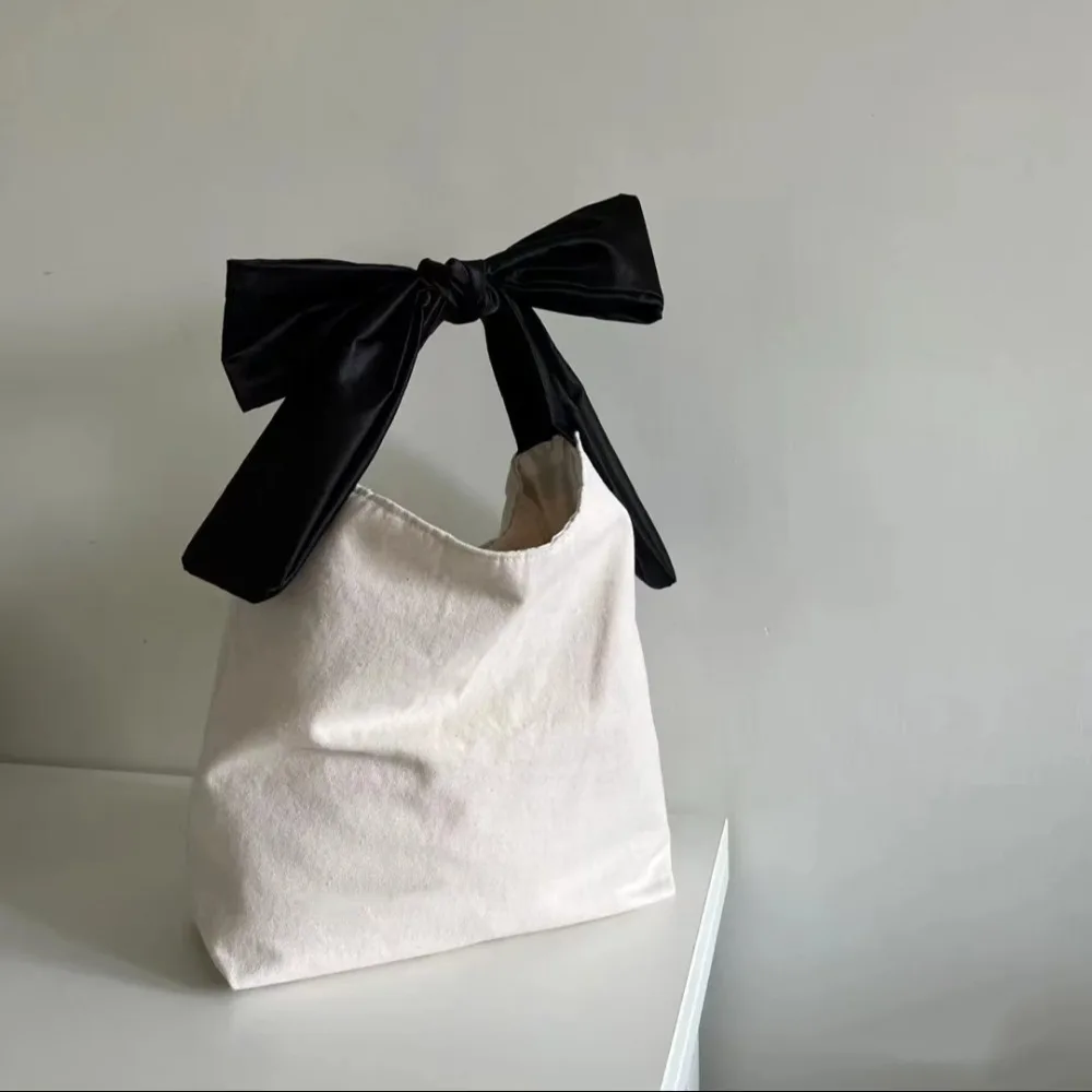 - Sweet Y2k Fashion Shoulder Underarm Bag Casual Canvas Simple Clutches Trendy Chic All Match Bow Design Purse and Handbags